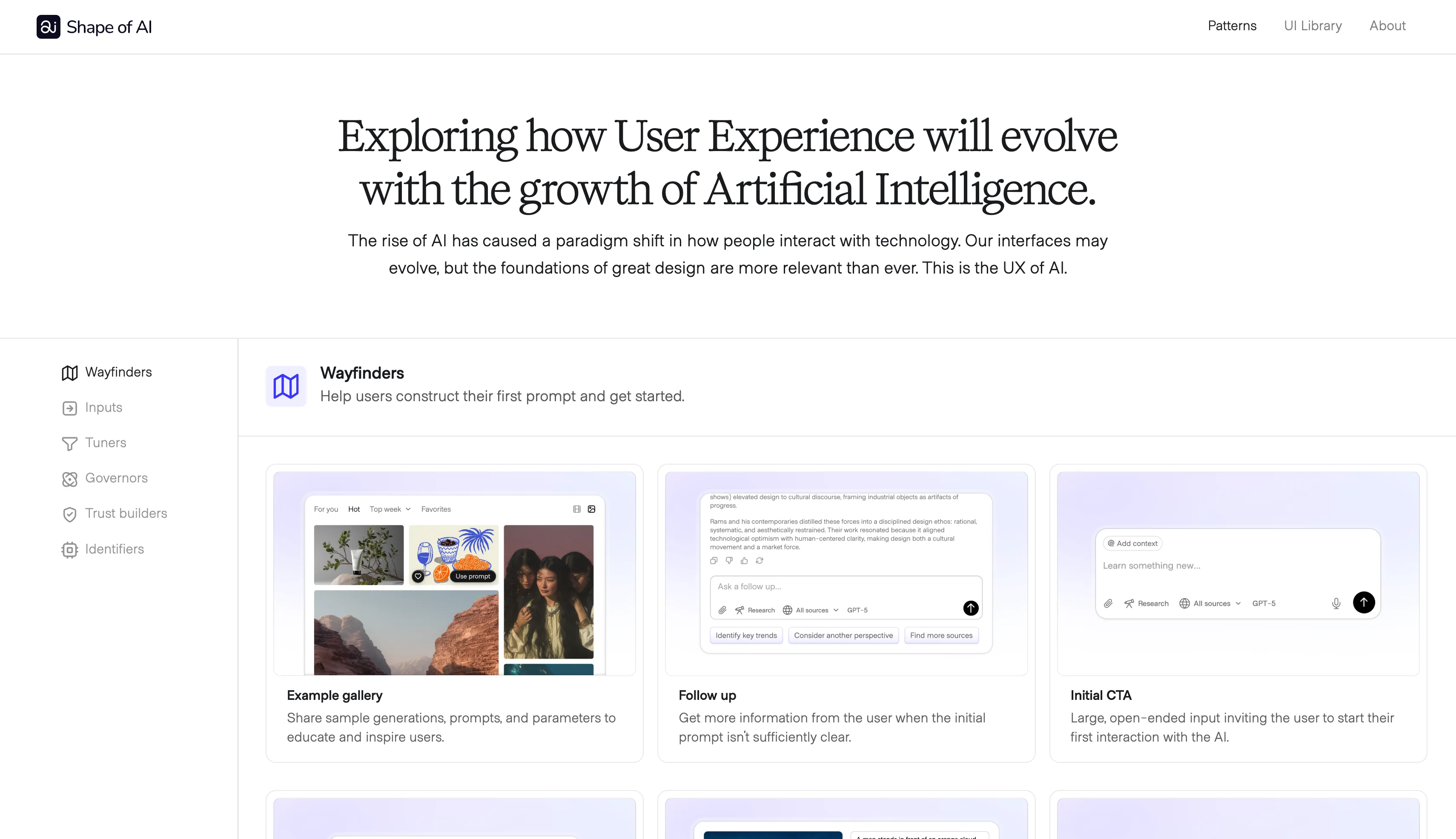 Pattern library of AIUX patterns exploring best practices for designing AI Products.