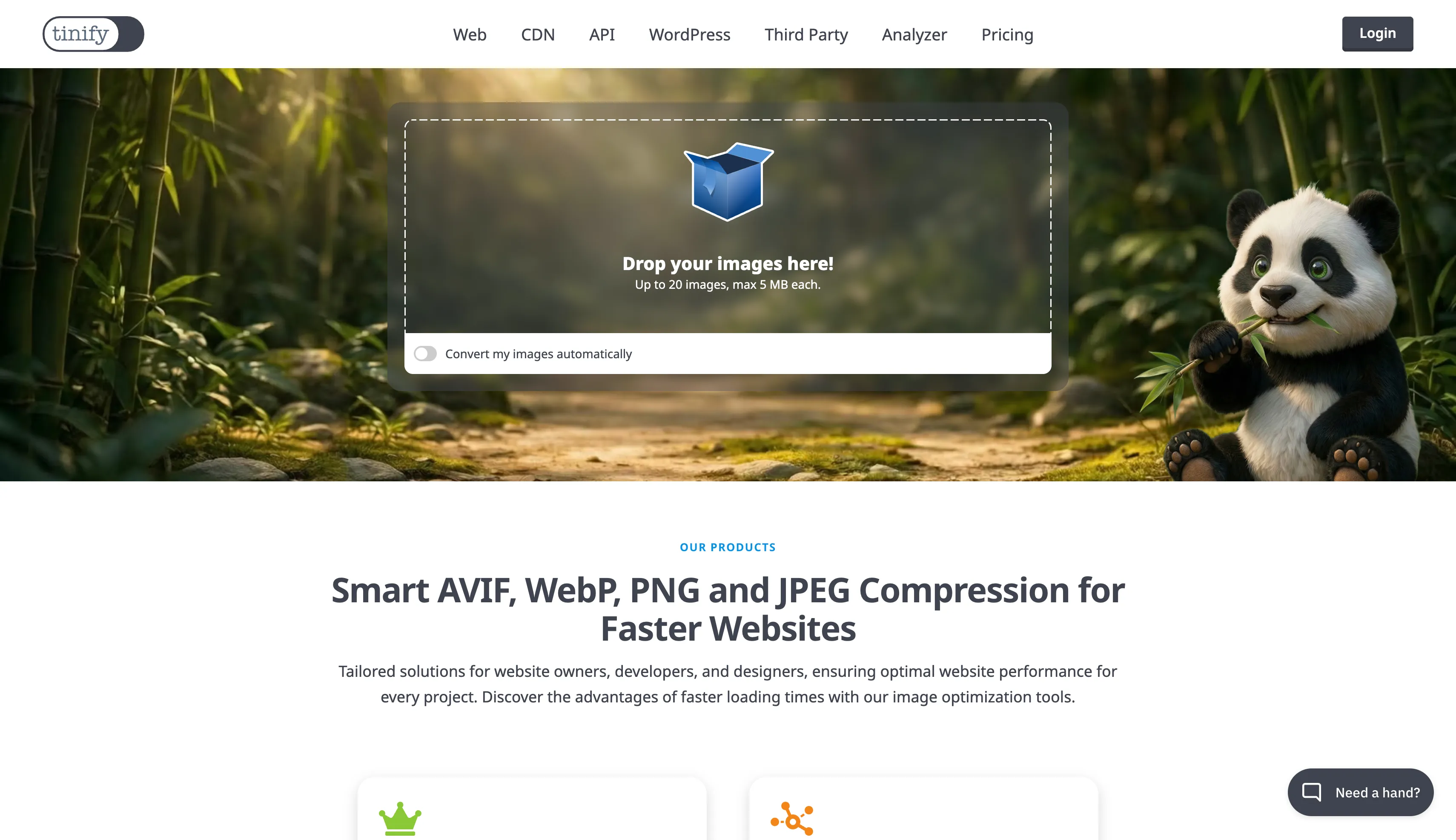 Free online image optimizer for faster websites! Reduce the file size of your WEBP, JPEG and PNG Images with TinyPNG’s smart lossy compression engine.