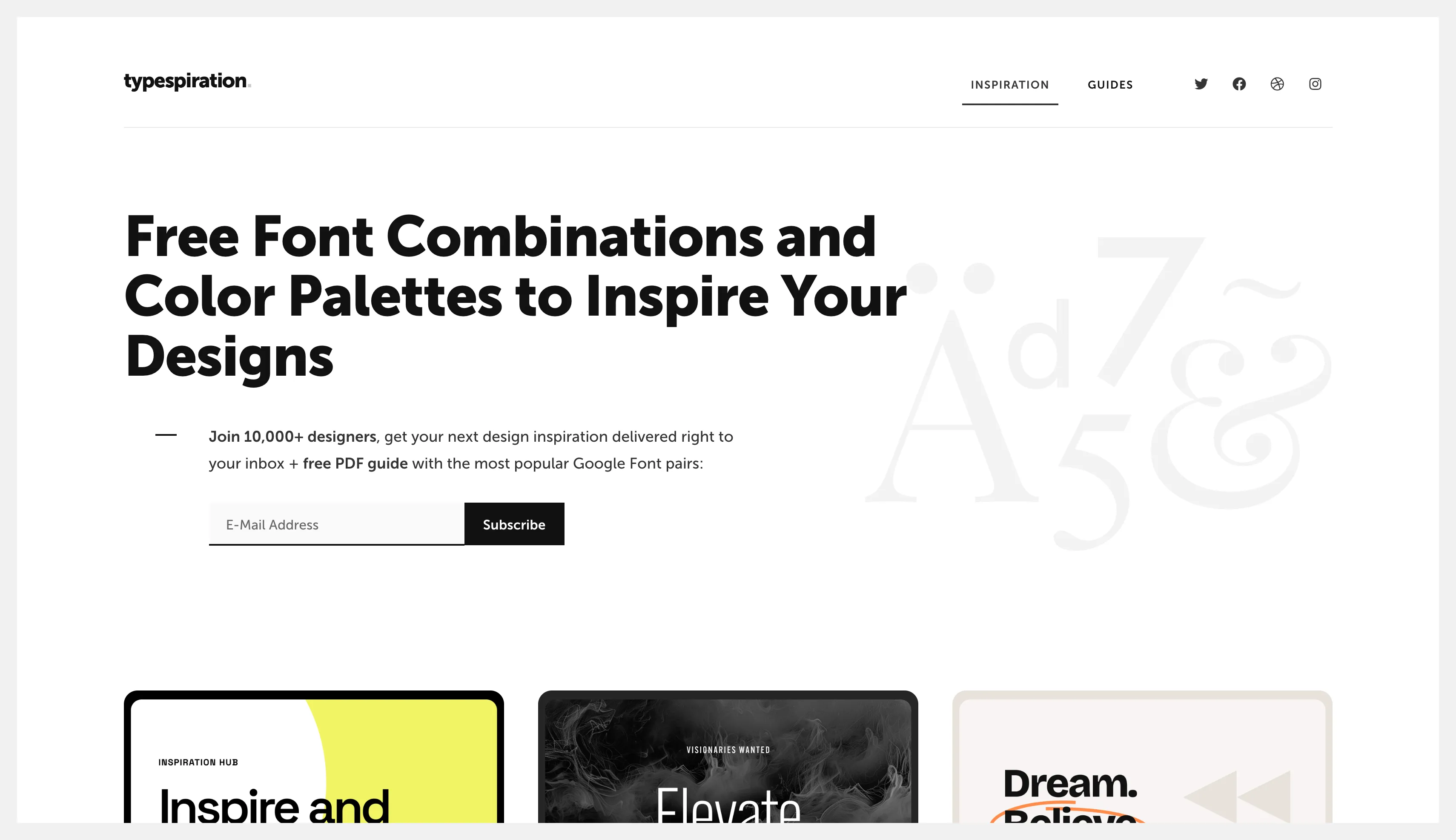 Typespiration – Free Font Combinations and Color Palettes to Inspire Your Designs