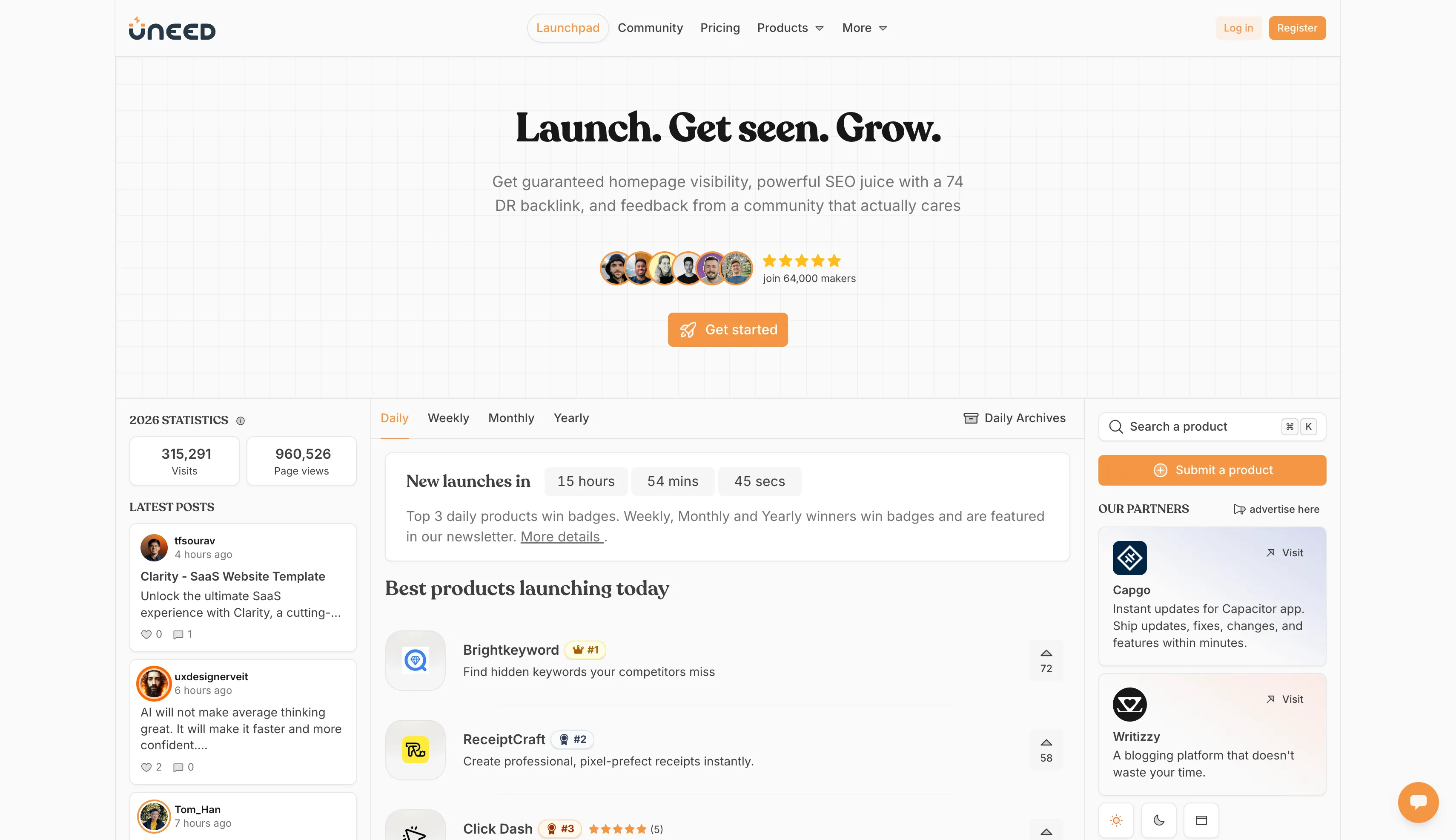 Social Launchpad for tech products: get guaranteed homepage visibility, powerful SEO juice with a 74 DR backlink, and feedback from a community that actually cares