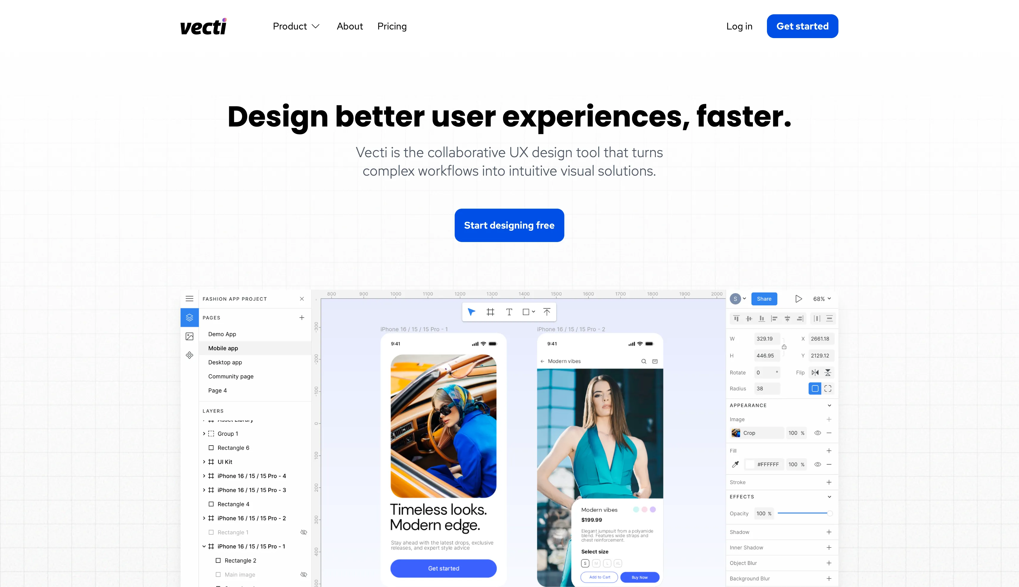 Vecti is a collaborative UX design tool that enables teams to create intuitive visual solutions in real-time, featuring a high-performance rendering engine for pixel-perfect designs. It offers free and paid plans with flexible pricing based on editors needed, making it suitable for designers and developers who prioritize performance, privacy, and creative freedom in their design workflow.