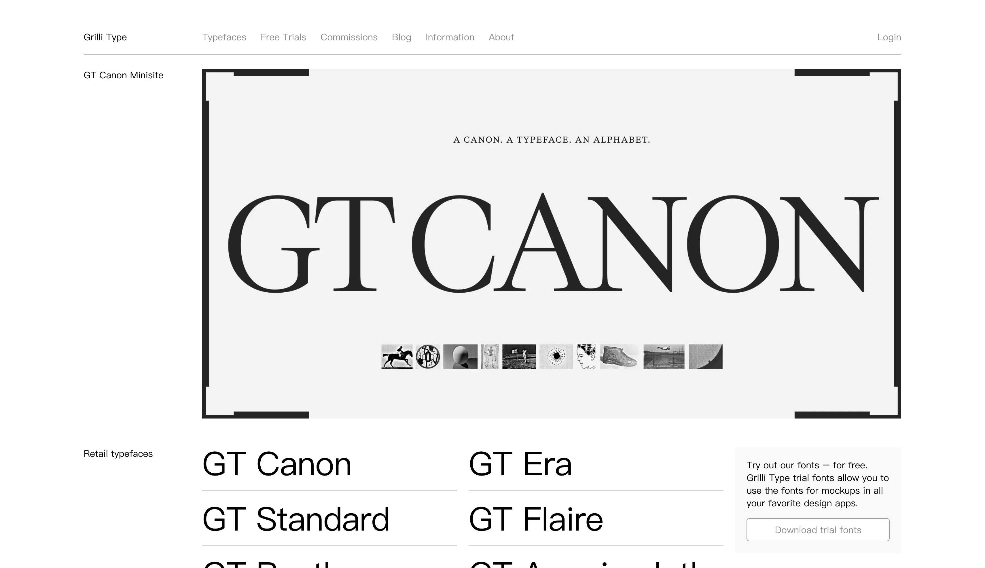 Grilli Type offers original retail and custom typefaces with a contemporary aesthetic in the Swiss tradition.