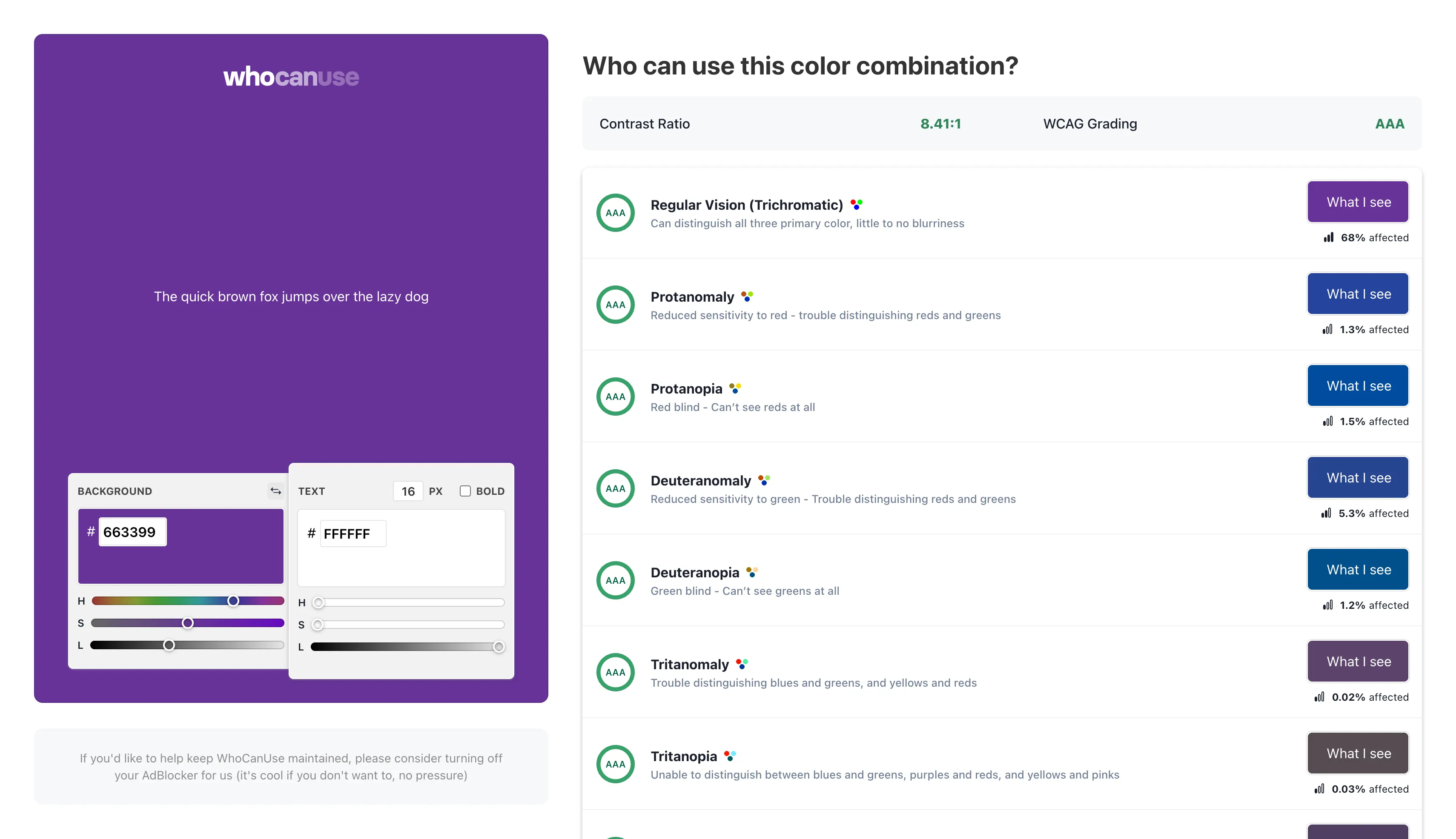 A tool that brings attention and understanding to how color contrast can affect people with different visual impairments.