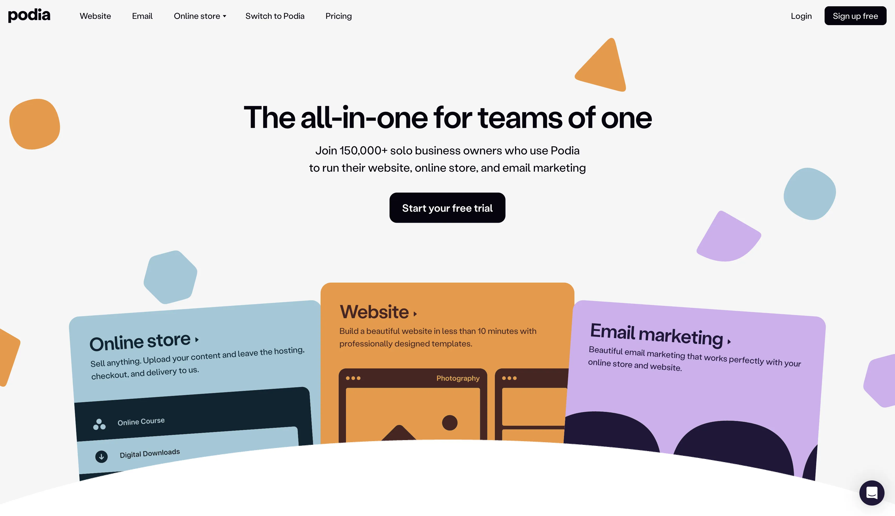 Your free website, blog, emails, and products - all in one place. Start and grow your online business with Podia.