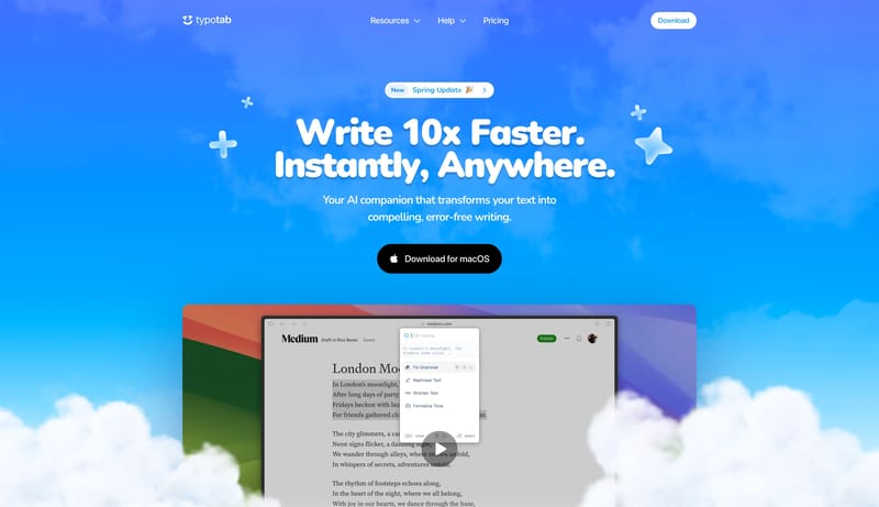 TypoTab, the ultimate AI writing assistant for macOS. Automate writing, generate content, and refine grammar or tone—works on any app for an efficient workflow.